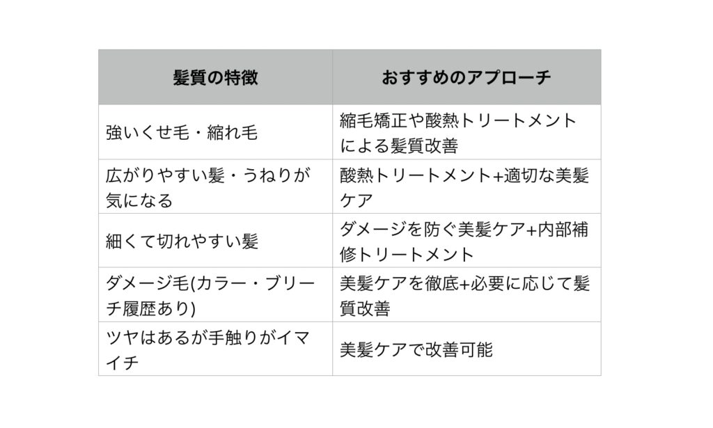 1. 髪質別おすすめのアプローチ